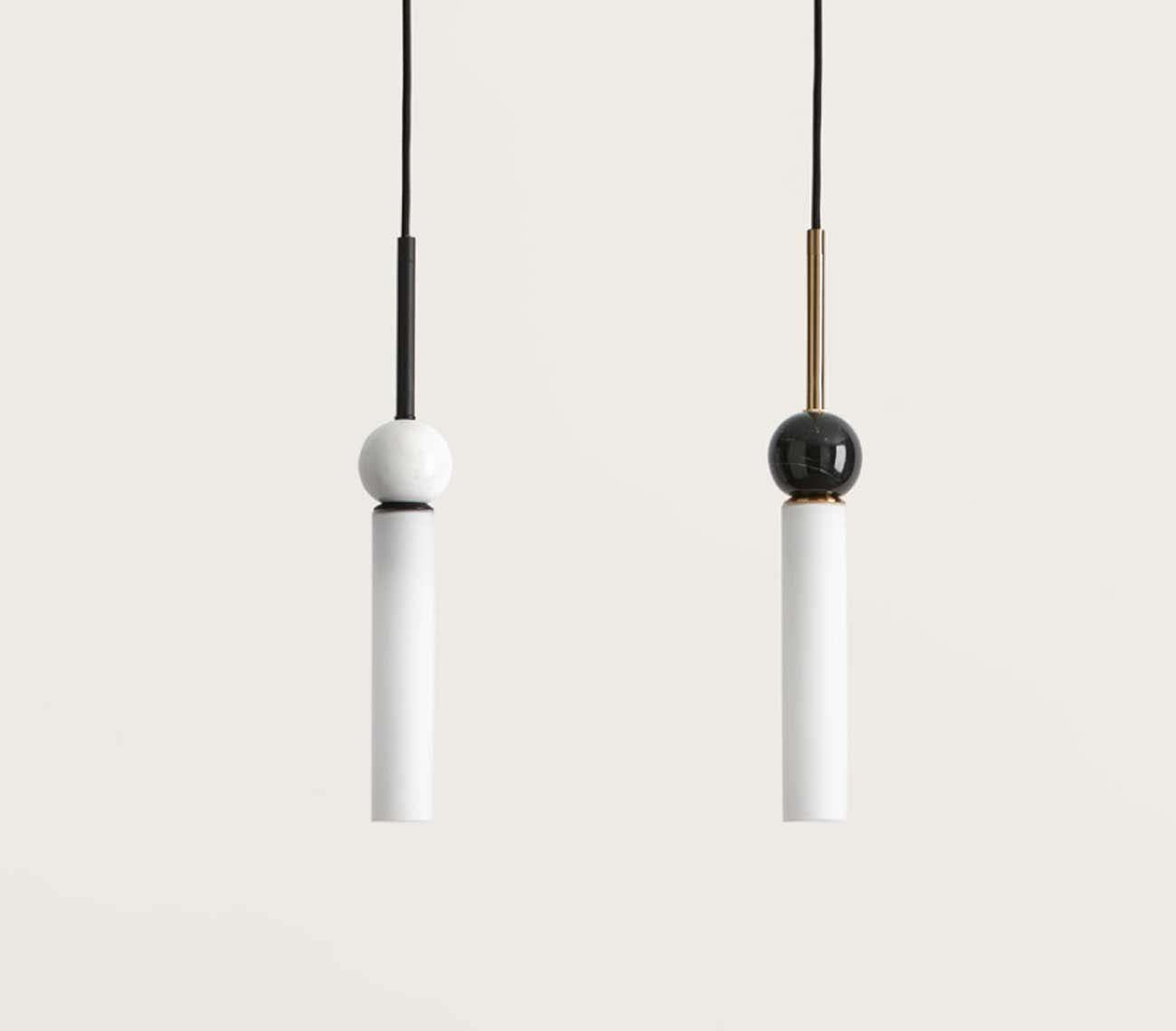 The Delie pendant lamp from the Spanish company Aromas del Campo is an exceptional design treasure that will transform your interior into a space full of elegance. The hanging rod, available in gold or black, carries a beautiful marble sphere that holds a cylinder that emits beautiful light.
