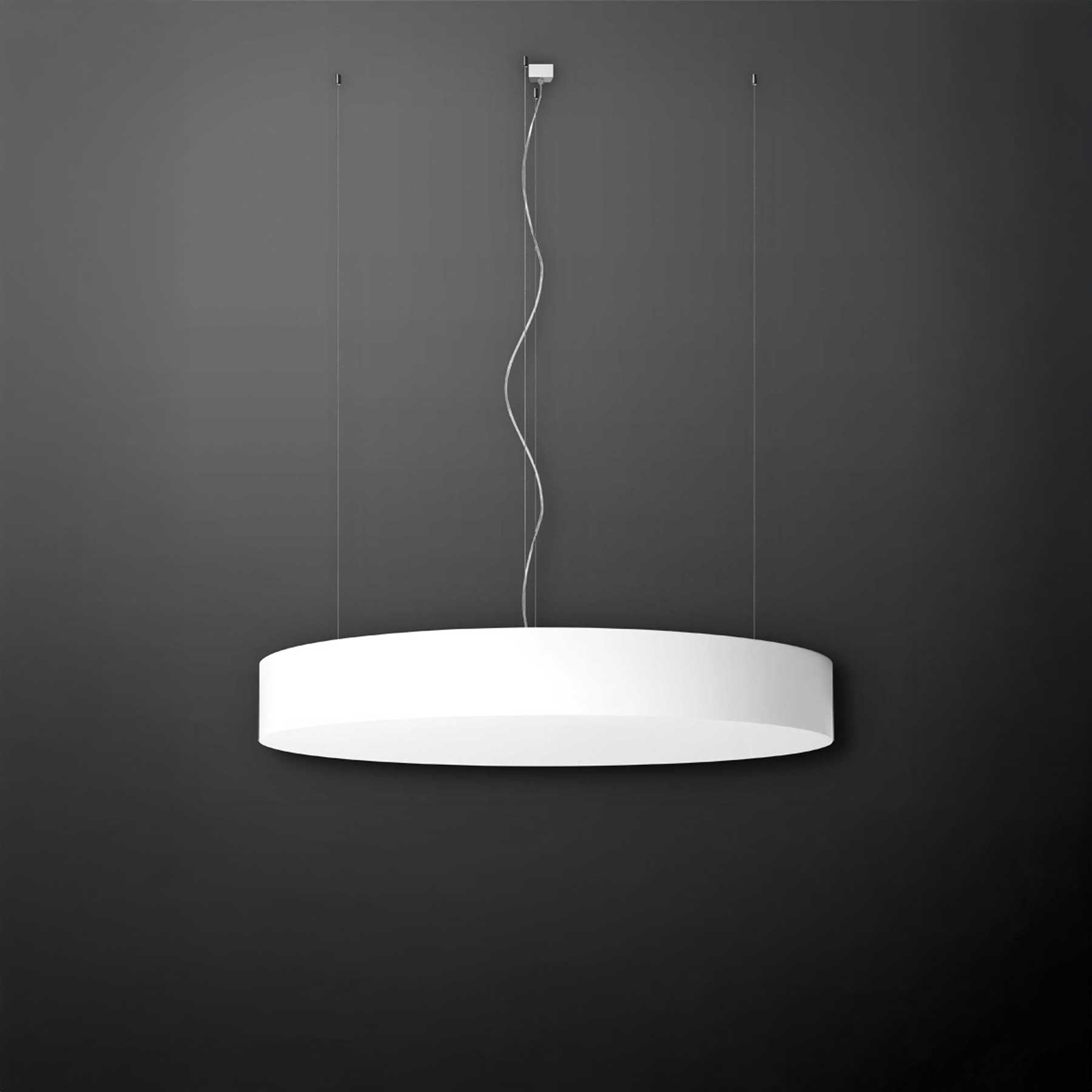 Obesna svetilka Izar R Max češkega podjetja Lucis je sodoben in eleganten svetlobni element, ki ga odlikujeta minimalistična zasnova in visoka funkcionalnost. Na voljo je v štirih velikostih s premeri 700 mm, 900 mm, 1200 mm in 1500 mm, kar omogoča njeno prilagodljivo uporabo v različnih vrstah notranjosti. Svetilo ponuja različice s svetlobno temperaturo 3000 K (topla bela) ali 4000 K (nevtralna bela) ter je na voljo z nižjimi in višjimi močmi glede na zahteve po intenzivnosti osvetlitve. Senčilo je izdelano iz visokokakovostnega akrilnega stekla, ki zagotavlja enakomerno razpršitev svetlobe, medtem ko je pokrov iz jeklene pločevine belo pobarvan, kar poudarja čist videz svetilke. Celoten sistem je obešen na kabelski mehanizem s prozornim kablom, zaradi česar je svetilka lahka in nevsiljiva.
